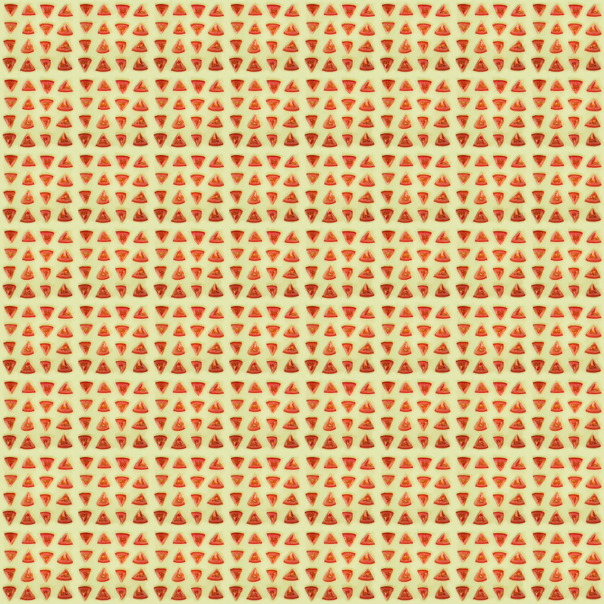 To create these images, sliced fruit was arranged into patterns on top of plexiglass and colored paper and then photographed from above. The photo was then brought into Photoshop and repeated before being printed in a large-scale. This formed an optical illusion, with viewers from a distance seeing mere geometric shapes.